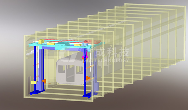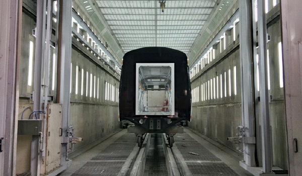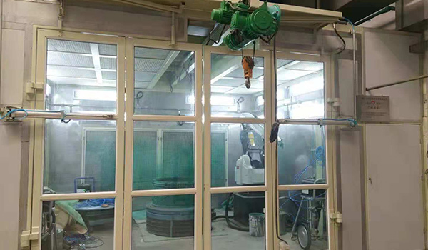 備由機(jī)器人噴漆房、人工補(bǔ)漆房、分路轉(zhuǎn)軌系統(tǒng)、烘干房、廢氣處理系統(tǒng)、電控系統(tǒng)等組成