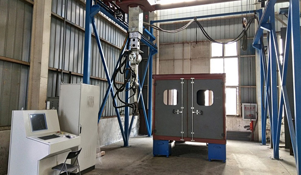 設(shè)備由室體、龍門行走機(jī)構(gòu)、噴砂機(jī)器人、三維作業(yè)車、回收系統(tǒng)、除塵系統(tǒng)、送風(fēng)/回風(fēng)系統(tǒng)、照明系統(tǒng)、電氣控制系統(tǒng)等組成