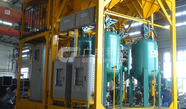 機組由噴砂系統(tǒng)、吸砂系統(tǒng)、回收系統(tǒng)、分離系統(tǒng)、儲存系統(tǒng)、除塵系統(tǒng)、控制系統(tǒng)組成