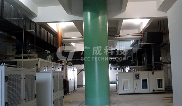 設(shè)備由壓縮機(jī)、蒸發(fā)器、冷凝器、轉(zhuǎn)輪、再生加熱器、風(fēng)機(jī)等組成的復(fù)合型除濕機(jī)