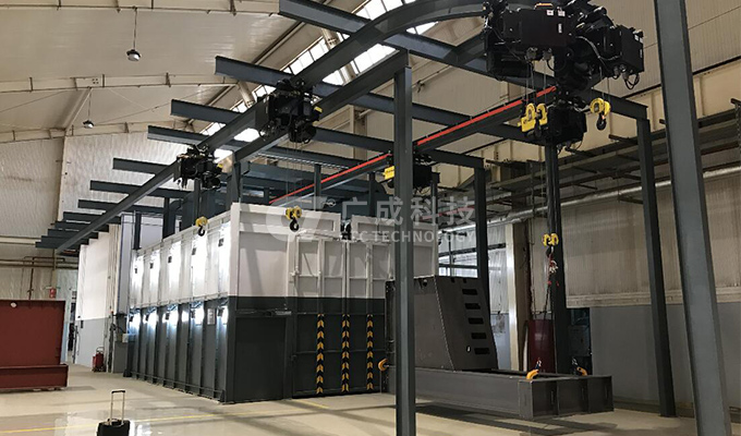 浸漆烘干系統(tǒng)配套浸漆槽、加熱系統(tǒng)、烘干房、有機廢氣處理系統(tǒng)、電動平車、在線監(jiān)測系統(tǒng)等